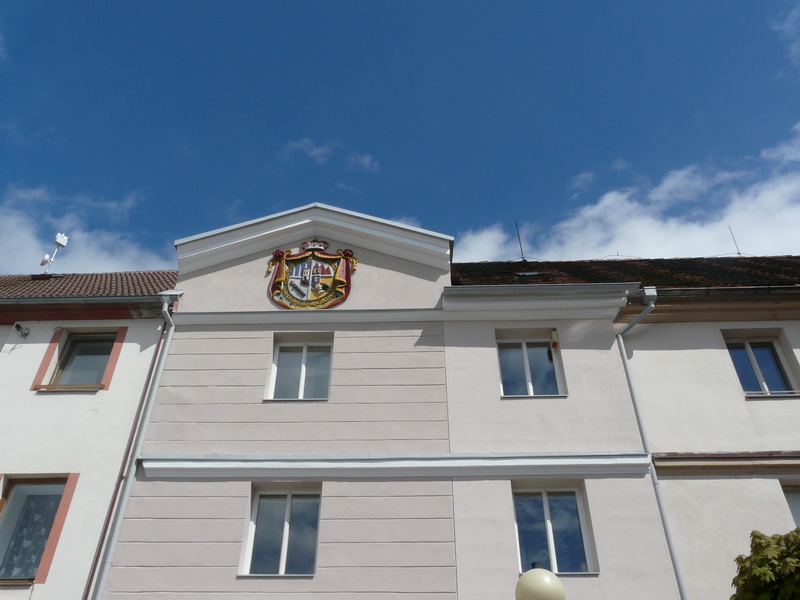Obnovený Schwarzenberský erb na bývalém knížecím statku čp. 24 Masarykovo náměstí v Protivíně